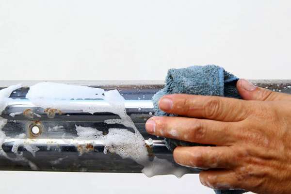 Cuka ampuh untuk mengusir karat karena memiliki asam nitrat atau asam asetat dalam kandungannya. Untuk mengandalkannya, Anda bisa copot komponen yang berkarat dan merendamnya dalam larutan cuka selama 1-2 hari. Jika komponen tersebut sulit atau tidak bisa dilepas, Anda bisa menuangkan cuka ke bagian yang berkarat dan menggunakan sikat untuk membersihkan karatnya.