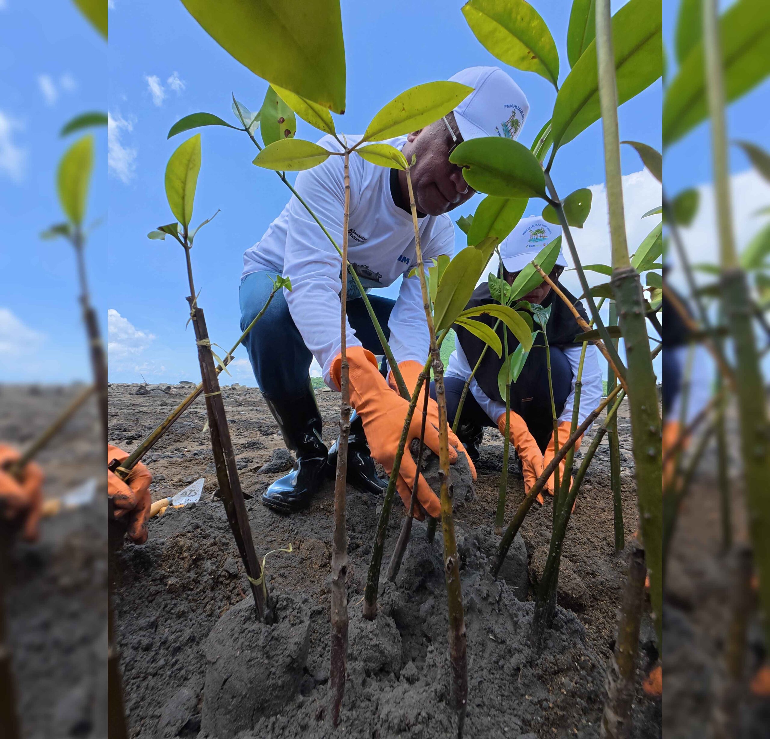 Kegiatan penanaman dilaksanakan bersama masyarakat lokal dan nasabah PNM, menjadikannya sebagai gerakan kolektif yang memperkuat kepedulian terhadap lingkungan. Penanaman beragam jenis pohon konservasi dan produktif ini diharapkan dapat meningkatkan kualitas udara, memperbaiki ekosistem pesisir, serta menyediakan perlindungan alami dari banjir dan abrasi.