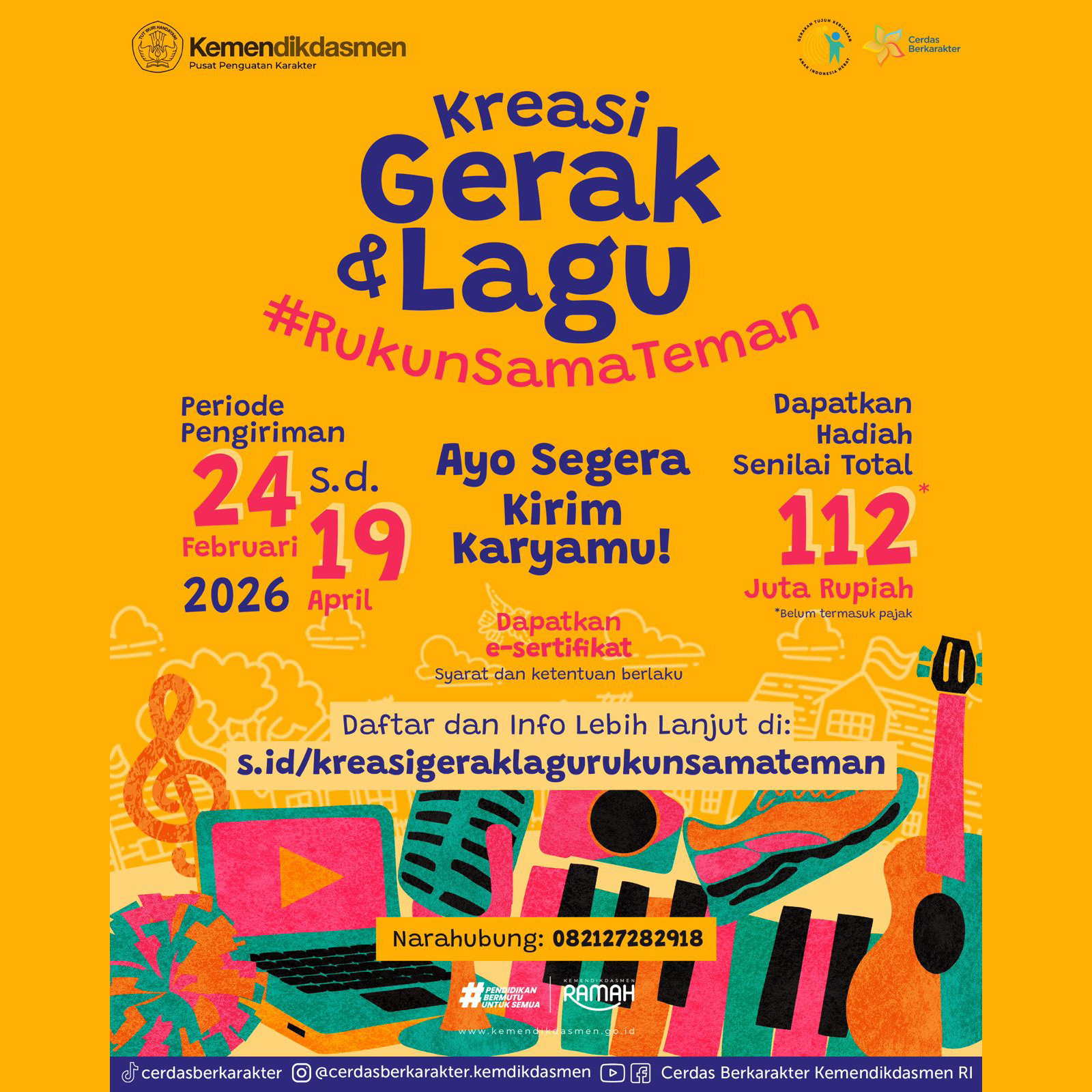 Informasi lengkap mengenai persyaratan dan mekanisme pendaftaran dapat diakses melalui laman resmi Cerdas Berkarakter: https://cerdasberkarakter.kemendikdasmen.go.id/kreasi-gerak-lagu-rukun-sama-teman. (San)