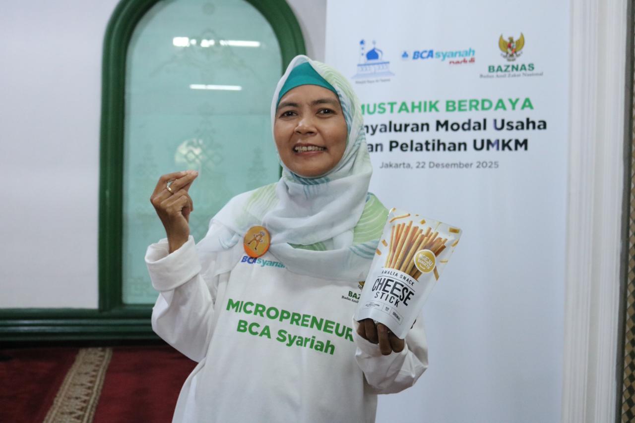 FACEINDONESIA.CO.ID – Badan Amil Zakat Nasional (BAZNAS) terus memperkuat upaya pemberdayaan ekonomi umat melalui kolaborasi strategis bersama BCA Syariah. Kolaborasi ini diwujudkan melalui kegiatan penyaluran modal usaha dan pelatihan bagi mustahik pelaku UMKM yang diselenggarakan di Masjid Raya Attaqwa, Jakarta Timur, Senin (22/12/2025).