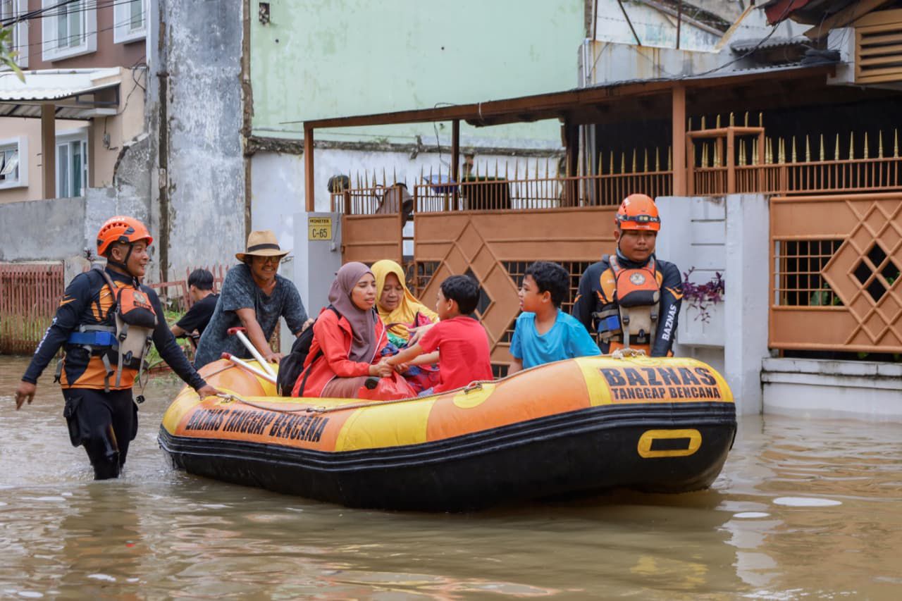 FACEINDONESIA.CO.ID – Badan Amil Zakat Nasional (BAZNAS) RI melalui BAZNAS Tanggap Bencana (BTB) bergerak cepat melakukan evakuasi warga yang terjebak banjir di sejumlah wilayah di Kota Tangerang dan Kabupaten Karawang, menyusul kondisi banjir yang semakin parah akibat intensitas hujan yang tinggi.