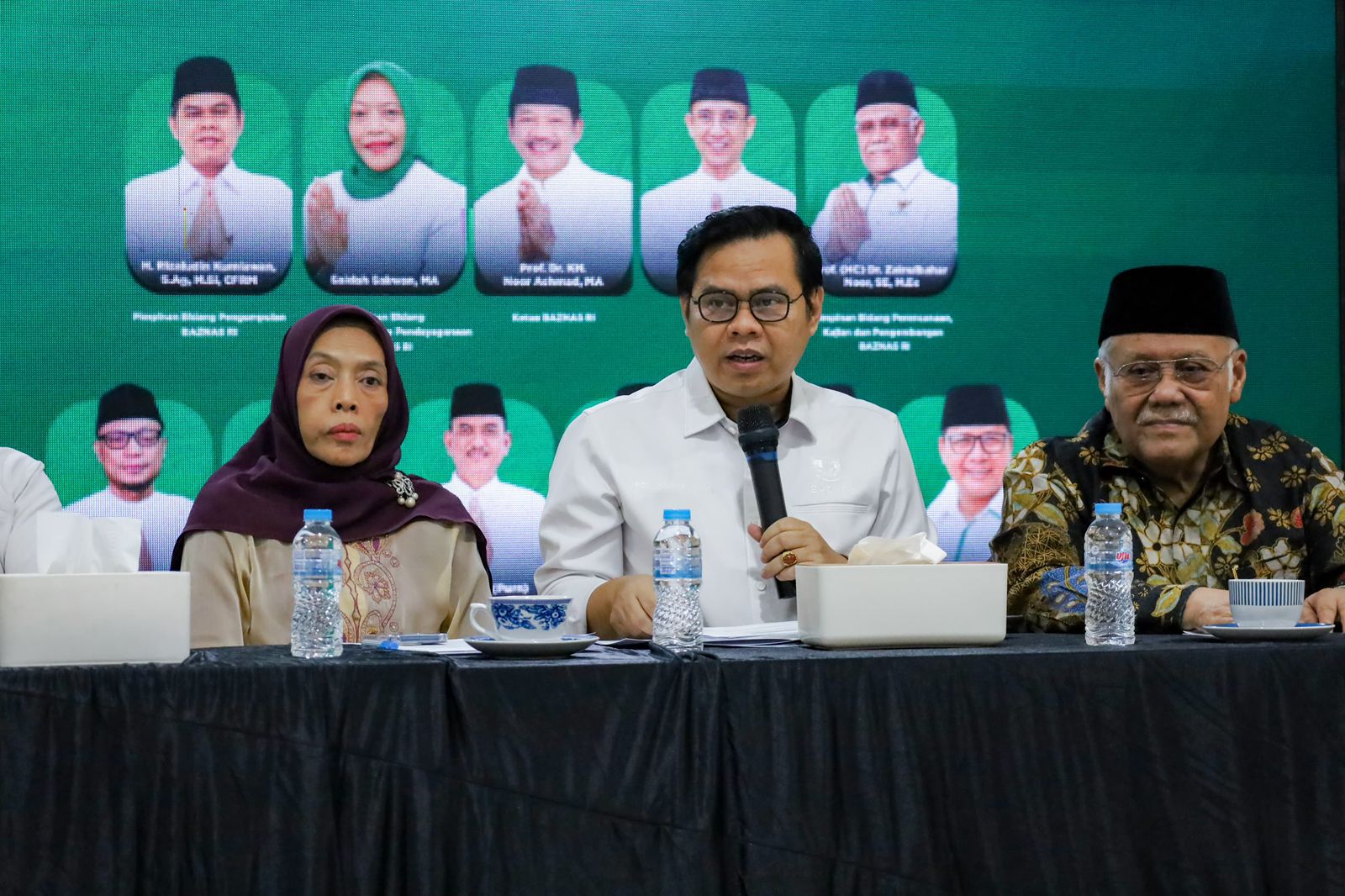 Turut hadir dalam konferensi pers tersebut Wakil Ketua BAZNAS RI Mokhamad Mahdum, Pimpinan BAZNAS RI Bidang Pendistribusian dan Pendayagunaan, Saidah Sakwan, MA., Pimpinan Bidang SDM, Keuangan dan Umum Kol. Caj. (Purn) KH. Nur Chamdani, Pimpinan Bidang Perencanaan, Kajian, dan Pengembangan Prof. (HC) Dr. Zainulbahar Noor, SE, M.Ec., Deputi 1 BAZNAS RI Bidang Pengumpulan M. Arifin Purwakananta, Direktur Layanan, Promosi, dan Data Optimasi BAZNAS RI sekaligus Ketua Panitia Ramadan BAZNAS 2026, H. Rulli Kurniawan, M.M., CMA., CFRM, beserta para amil dan amilat BAZNAS. (Zid)