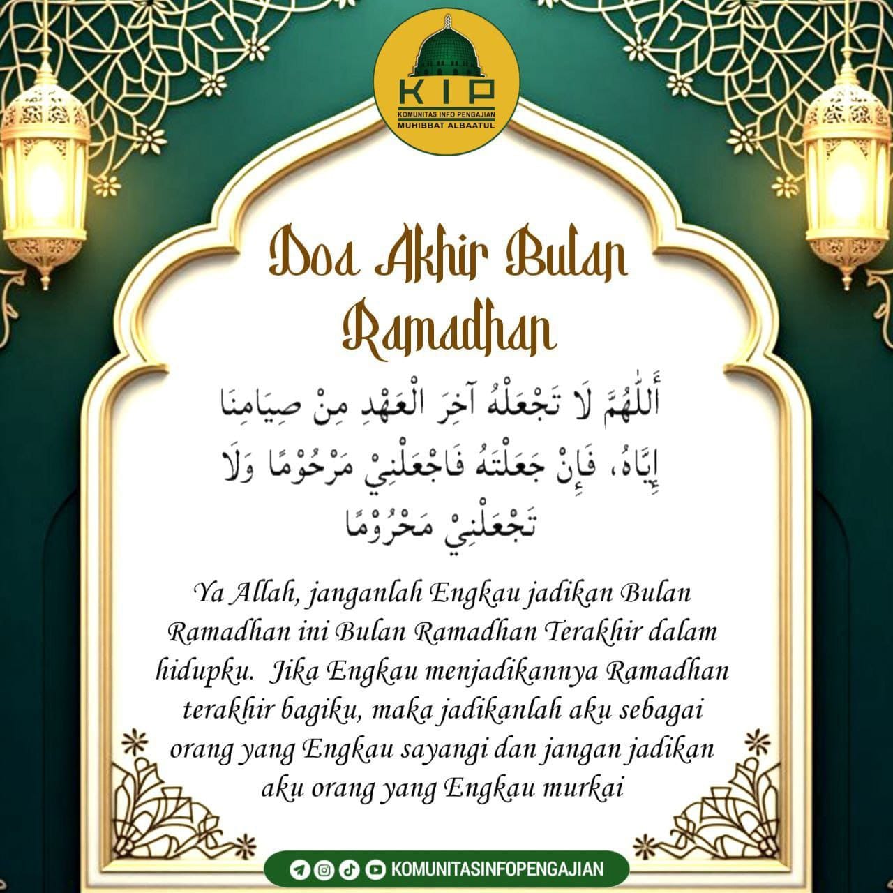 Selain itu, doa tersebut mengajak umat Muslim untuk menutup Ramadhan dengan penuh keikhlasan, memperbanyak istighfar, dan meningkatkan kualitas ibadah di hari-hari terakhir.