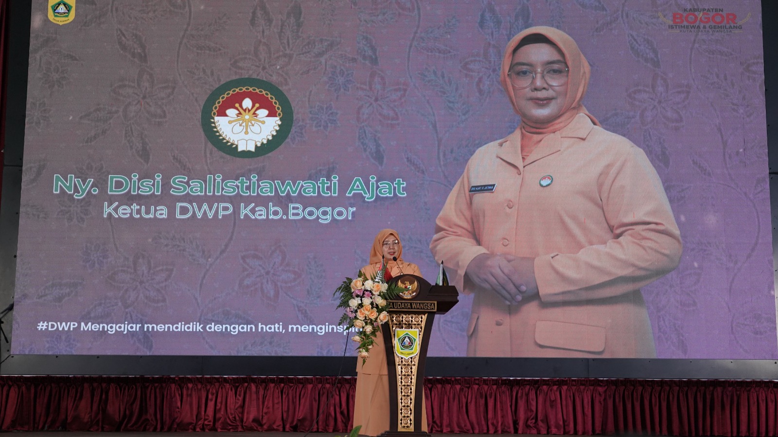 Menyampaikan sambutan Ketua DWP Pusat, Ketua DWP Kabupaten Bogor, Disi Ajat Rochmat Jatnika mengatakan, keluarga merupakan pondasi utama dalam membentuk generasi masa depan. Setiap anak harus tumbuh dalam lingkungan keluarga yang memberikan asih, asuh, dan asah secara seimbang, yakni kasih sayang, pemenuhan kebutuhan dasar dan perawatan, serta stimulasi dan pendidikan yang memadai.