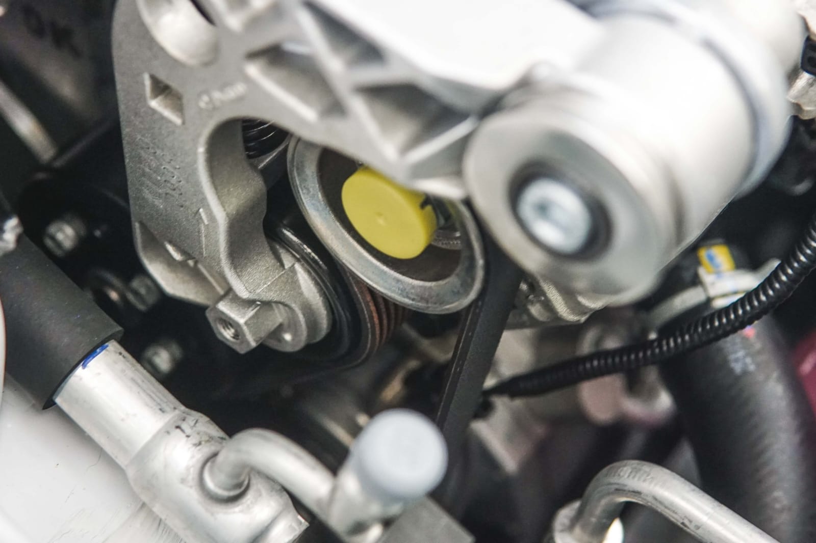 Belt harus berada pada satu garis lurus. Jika tidak lurus, maka belt akan bergesek pada pulley dari komponen yang menghasilkan suara decitan. Pada situasi terburuk, akan timbul bau gosong dimana belt mengalami gesekan berlebih sehingga panas, dan sangat berpotensi untuk putus. (Zid)