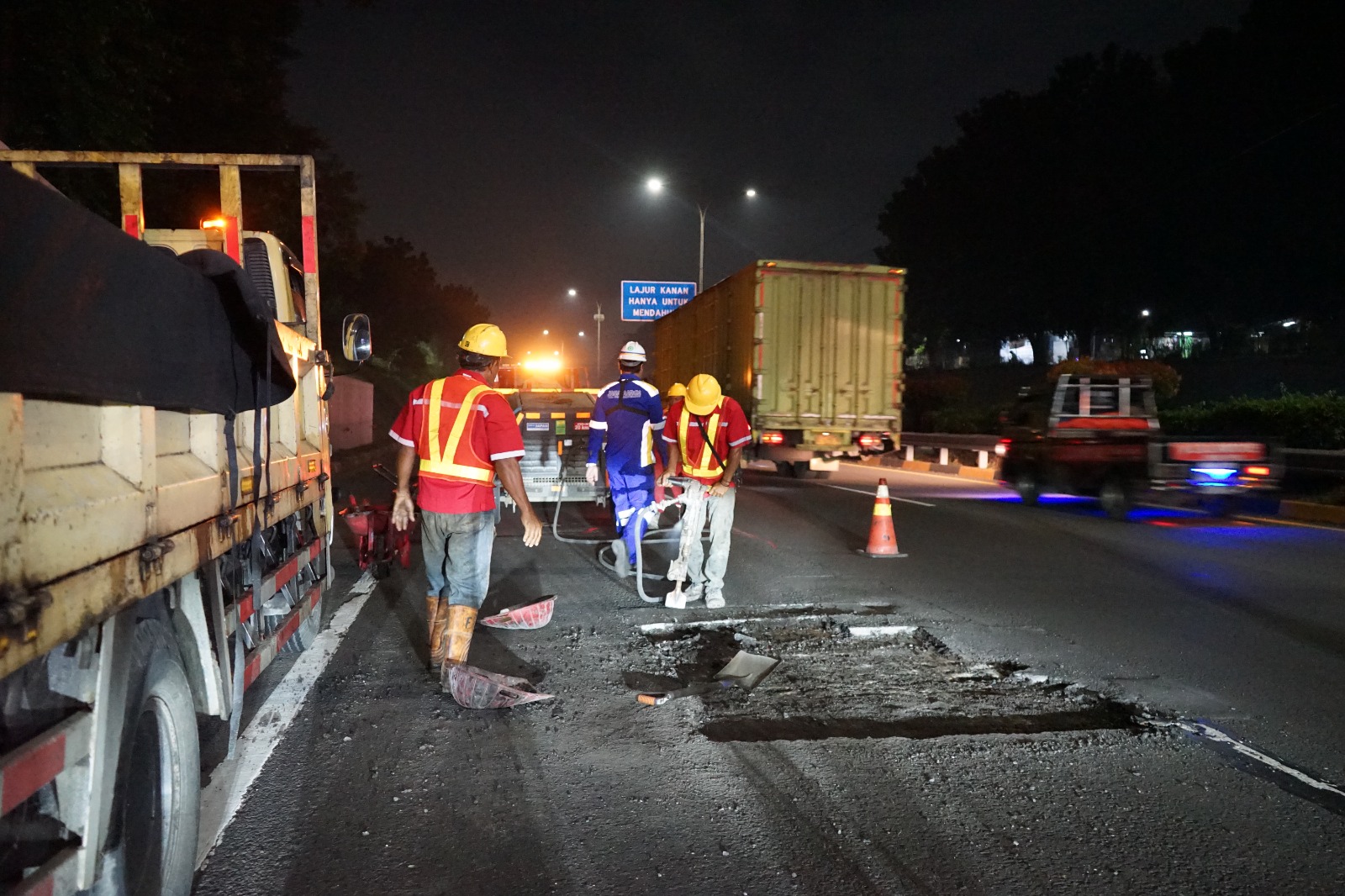“Kami bertanggung jawab untuk menyelesaikan seluruh titik kerusakan seoptimal mungkin, saat ini kami menurunkan total sebanyak 31 tim sapu lubang yang terbagi dalam tiga wilayah representative office kami di wilayah Jabodetabek dan Jabar. Untuk menjaga waktu perbaikan yang optimal, saat ini prioritas pemeliharaan perkerasan yang kami lakukan berupa patching coldmix (campuran aspal dingin) dan hotmix (campuran aspal panas) menyesuaikan tingkat kerusakan dan kondisi lalu lintas sebelum dilaksanakannya program perbaikan permanen berupa Scrapping Filling Overlay (SFO) dan rekonstruksi perkerasan secara bertahap,” tambah Widiyatmiko.