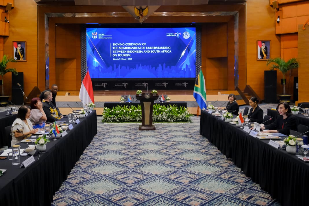 Penguatan kolaborasi tersebut ditandai dengan penandatanganan Nota Kesepahaman (MoU) antara Menteri Pariwisata (Menpar) RI Widiyanti Putri Wardhana dan Menteri Pariwisata Afrika Selatan Patricia de Lille di Gedung Sapta Pesona, Kantor Kementerian Pariwisata, Jakarta, Kamis (5/2/2026).