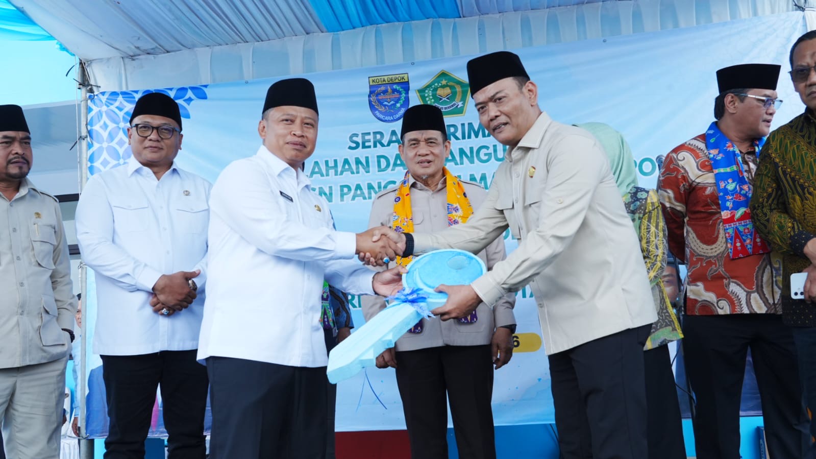 Serah terima hibah ini dihadiri Anggota DPR RI Nuroji, Anggota DPRD Kota Depok Edi Masturo dan Ade Ibrahim, Staf Khusus Menteri Agama Nona Gayatri Nasution, Tenaga Ahli Menteri Agama Junisab Akbar, Kepala Kanwil Kemenag Jawa Barat Dudu Rohman, serta jajaran Kementerian Agama dan Pemerintah Kota Depok. (San)