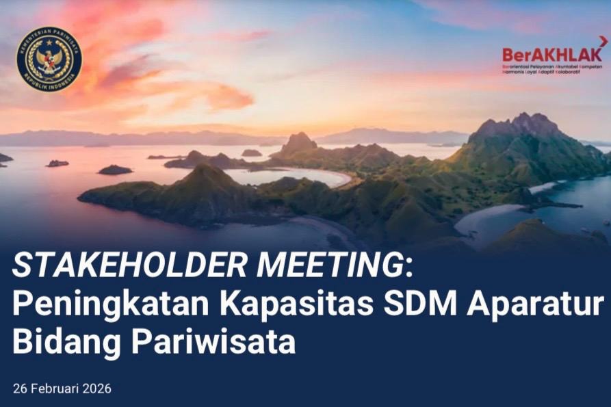 FACEINDONESIA.CO.ID – Kementerian Pariwisata (Kemenpar) meningkatkan kapasitas sumber daya manusia (SDM) aparatur di bidang pariwisata melalui penyelenggaraan Stakeholder Meeting yang diharapkan dapat memperkuat kompetensi dan kapabilitas aparatur agar lebih adaptif serta mampu menghadapi berbagai tantangan dalam mewujudkan pariwisata yang berkualitas dan berkelanjutan.