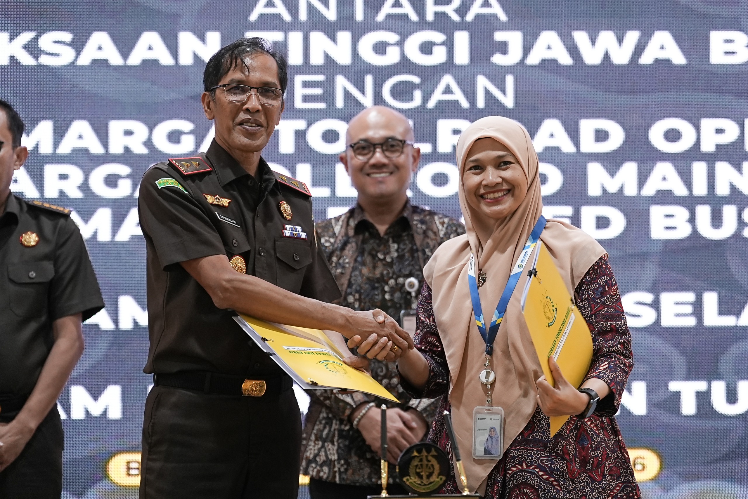 Penandatanganan perjanjian dilakukan oleh Kepala Kejaksaan Tinggi Jawa Barat, Dr. Hermon Dekristo, S.H., M.H., dan Direktur Utama PT Jasamarga Tollroad Operator, Tri Wahyu Subekti.