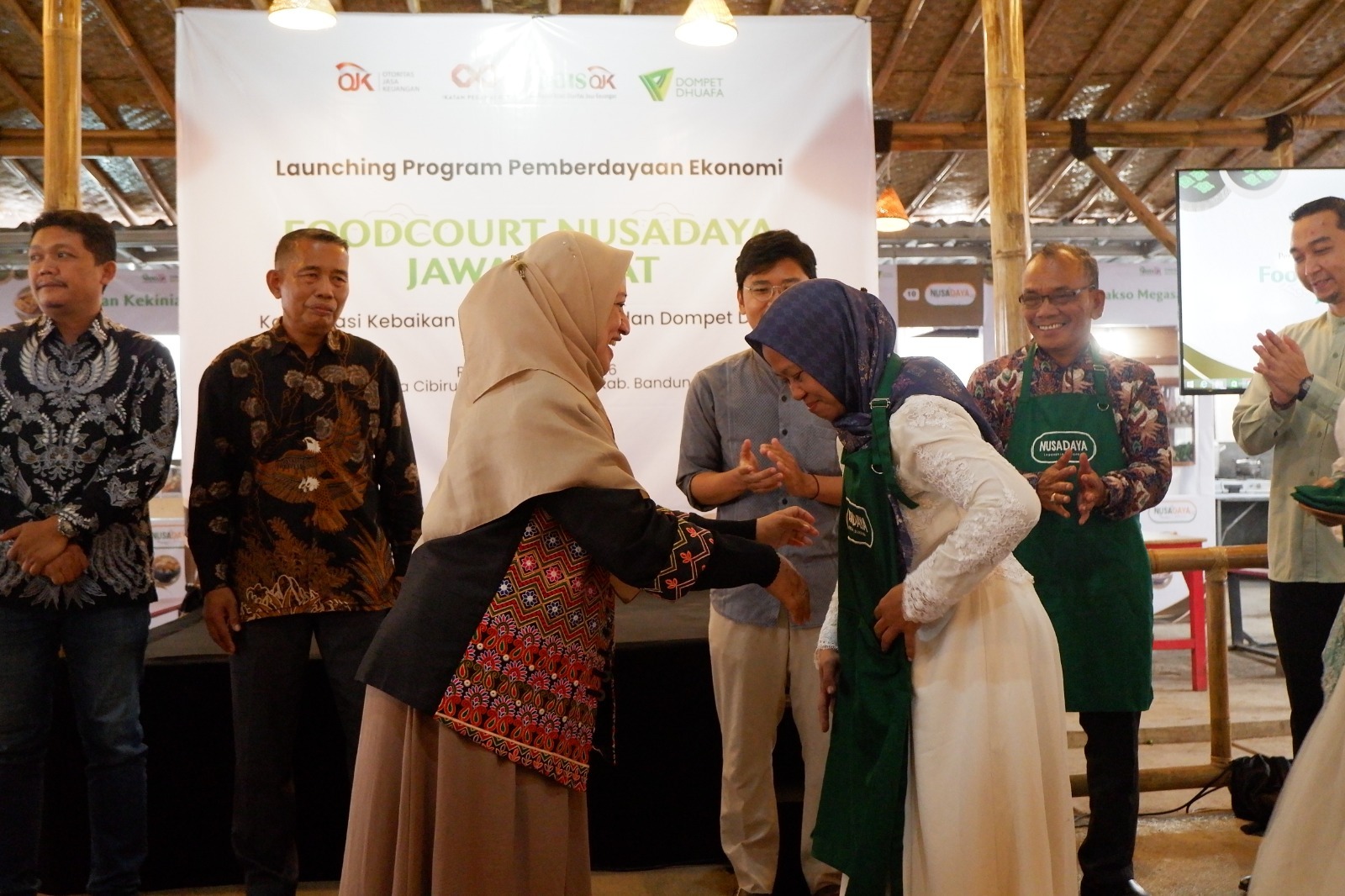 Dompet Dhuafa bersama Rohani Islam Otoritas Jasa Keuangan (ROIS OJK) secara resmi meresmikan Program Pemberdayaan Ekonomi Foodcourt Nusadaya Jawa Barat yang berlokasi di Komplek Bumi Harapan, Desa Cibiru Hilir, Kecamatan Cileunyi, Kabupaten Bandung, Jawa Barat, Rabu (21/01/2026).