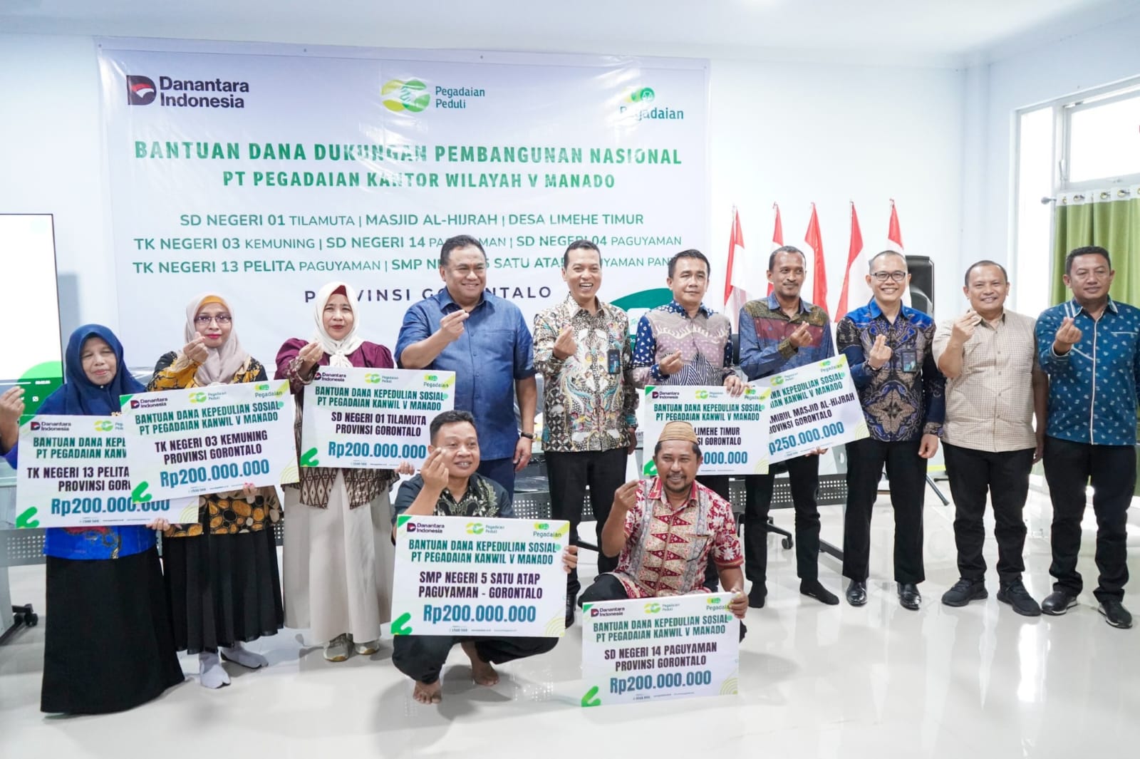 FACEINDONESIA.CO.ID – PT Pegadaian melalui Kantor Wilayah V Manado menyalurkan bantuan pendidikan dan dukungan pembangunan wilayah di Paguyaman, Kabupaten Boalemo, Provinsi Gorontalo. Kegiatan ini merupakan bagian dari komitmen Pegadaian dalam mendukung pembangunan berkelanjutan, khususnya di sektor pendidikan dan sosial, menjelang akhir tahun 2025. Penyerahan bantuan dilakukan secara simbolis oleh Pemimpin Wilayah PT Pegadaian Kanwil V Sulawesi Utara, Sulawesi Tengah, Gorontalo, Maluku Utara, dan Papua (Suluttenggo–Malut–Papua), Pratikno, dan dihadiri langsung oleh Anggota DPR RI Rahmad Gobel, Bupati Boalemo Rum Pagau, bersama jajaran pemerintah daerah serta para penerima manfaat.
