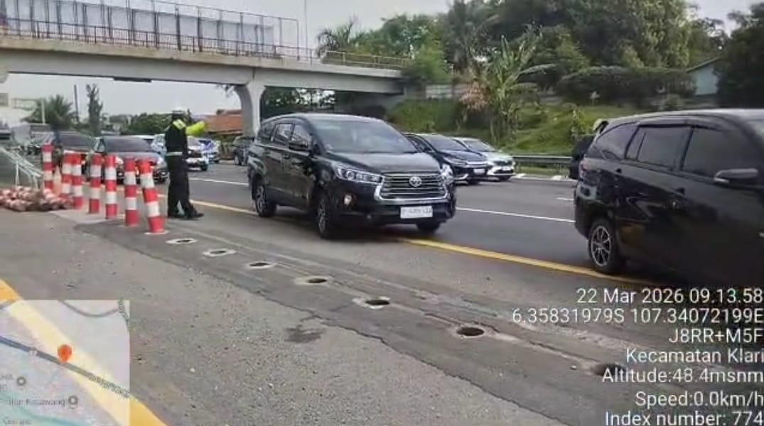 FACEINDONESIA.CO.ID – Seiring meningkatnya mobilitas kendaraan pada periode libur hari raya idulfitri 1447H, rekayasa lalu lintas contraflow diberlakukan di KM 55 hingga KM 65 Ruas Tol Jakarta–Cikampek sejak Minggu, 22 Maret 2026 pukul 09.13 WIB.
