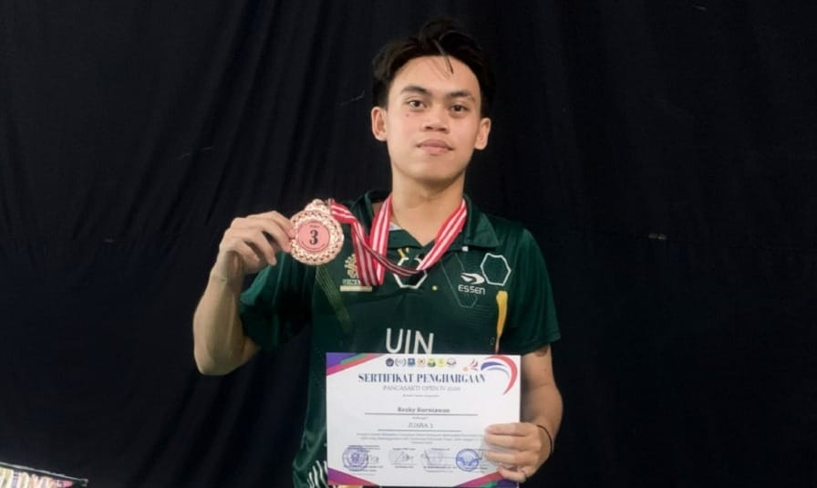 FACEINDONESIA.CO.ID – Prestasi nasional diraih mahasiswa Universitas Islam Negeri (UIN) Siber Syekh Nurjati Cirebon. Rezky Kurniawan, mahasiswa semester 2 Program Studi Hukum Ekonomi Syariah (HES) Fakultas Syariah, meraih Juara 3 Ganda Campuran Tingkat Nasional dalam Kejuaraan Bulutangkis Pancasakti Open IV 2026.