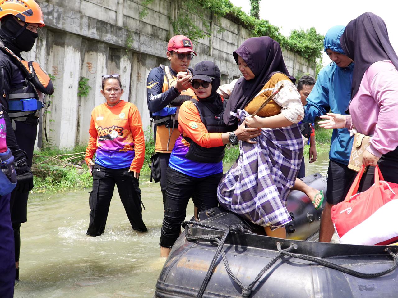 Tim BTB segera melakukan evakuasi seorang ibu hamil, Siti Nurjanah (22) menggunakan perahu karet kemudian dilanjutkan dengan membawanya ke rumah sakit Mandaya Hospital Karawang untuk segera mendapatkan pertolongan medis dan proses persalinan.