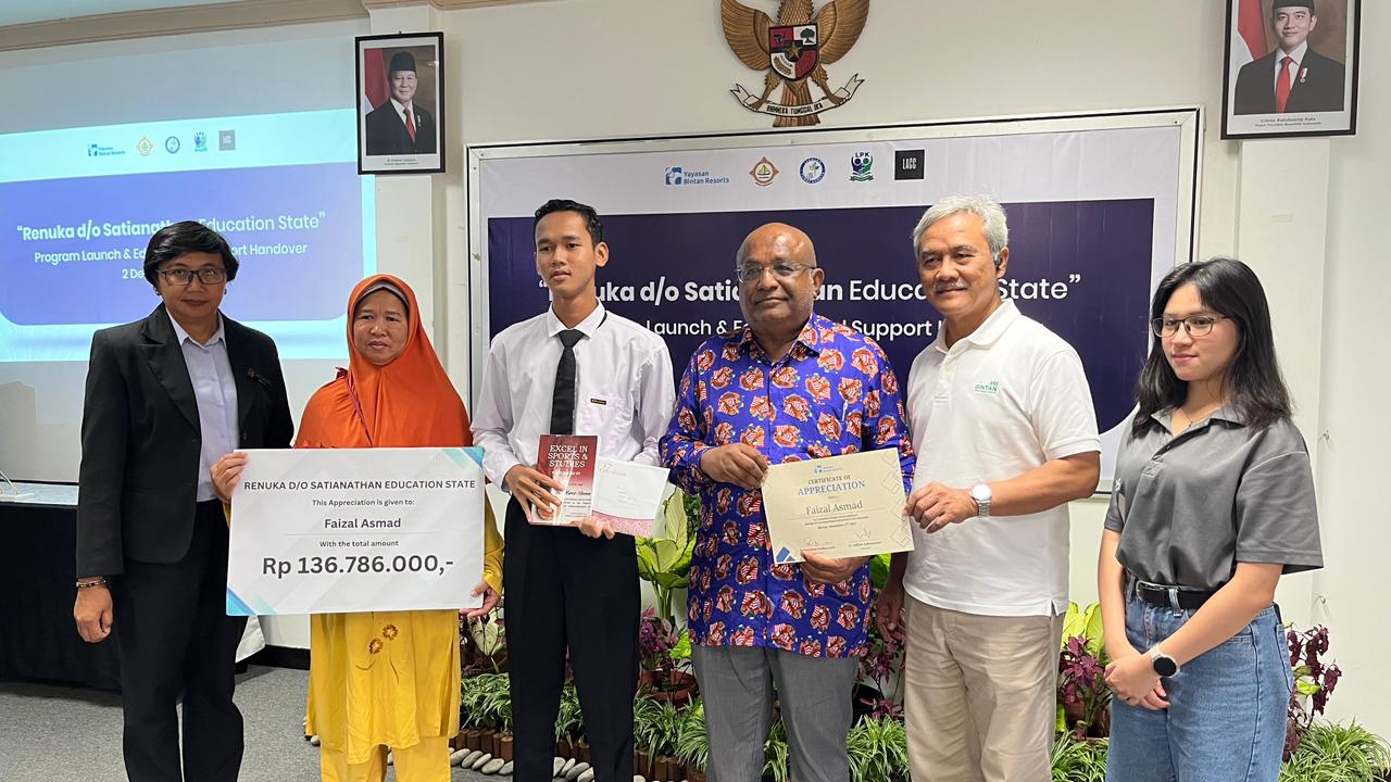 FACEINDONESIA.CO.ID – Yayasan Bintan Resort menerima bantuan beasiswa untuk sembilan pelajar dari Bapak Asuh asal Singapura, Satianathan Nadarajah, dengan mengatasnamakan Renuka d/o Satianathan Education Estate.